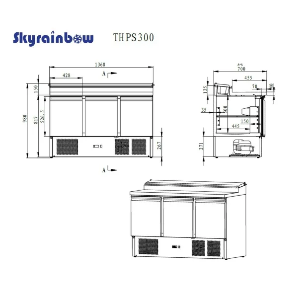 Skyrainbow Zubereitungstisch 3-türig 8 x GN 1/6 +2° bis +8°C