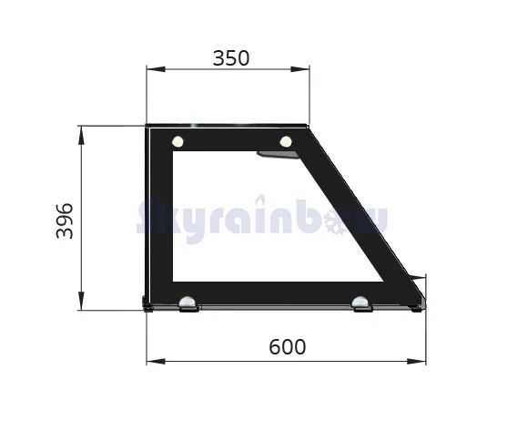- Klarglas flach ohne Zwischenablage – H=396mm / Gesamthöhe: 1250mm